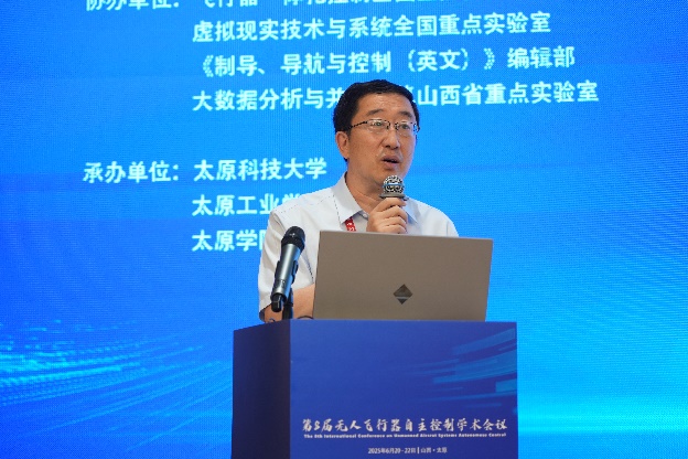 大会主席由中国自动化学会会士、中国自动化学会无人飞行器自主控制专委会主任、中国航空学会制导、导航与控制分会主任、我院段海滨教授和太原学院校长蔡江辉教授共同担任。大会开幕式由太原科技大学计算机科学与技术学院院长崔志华教授主持。我院段海滨教授代表主办单位致辞,对各位专家和代表莅临太原参加本次会议表示热烈欢迎,指出该会议自创办以来,一直紧密面向国家需求,对无人飞行器系统自主控制领域的前沿问题和颠覆性技术进行深度研讨,为国内各行业的无人飞行器研究者打造了一个定位高端、突出前沿、学研合作、协同共赢的“头脑风暴平台”。太原科技大学校长梁卫国教授代表承办单位致辞,太原科技大学是新中国设立的第一所重型机械本科院校,也是我国重大技术领域重要的人才培养和科学研究基地,学校在控制、电子信息技术、计算机等学科领域实力雄厚,注重科教融汇、产教融合,不断汇聚海量优质资源,通过创新体制机制、引进学科高端人才、打造高水平师资团队等系列举措,构建学校新质学科生态体系。他相信此次会议必将通过学术交流、智慧碰撞,共同推进无人飞行器新质自主控制在低空经济等领域的高质量发展。