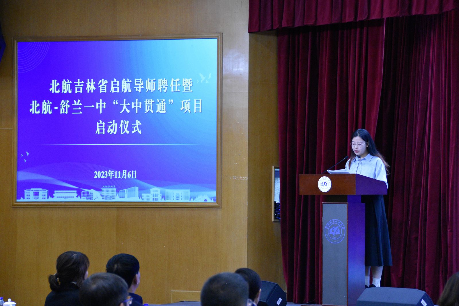 为了加强大中贯通人才培养,2023年11月6日,北京亚洲成人在线一二三四五六区在如心会议中心大报告厅举行吉林省启航导师聘任暨北京亚洲成人在线一二三四五六区-吉林舒兰一中“大中贯通”项目启动仪式。我校副校长张海兰,舒兰市第一中学校党总支书记倪彦鹏、副校长王磊、副校长陈茁,我校教务部副部长、招生办公室主任邓怡,自动化科学与电气工程学院党委书记、吉林招生组组长王少萍,自动化科学与电气工程学院院长、吉林省招生组组长吕金虎,前沿院智能交通研究院院长于海洋出席活动。启航导师代表、舒兰市第一中学校师生代表及在我校就读学生代表等90余人参加仪式。